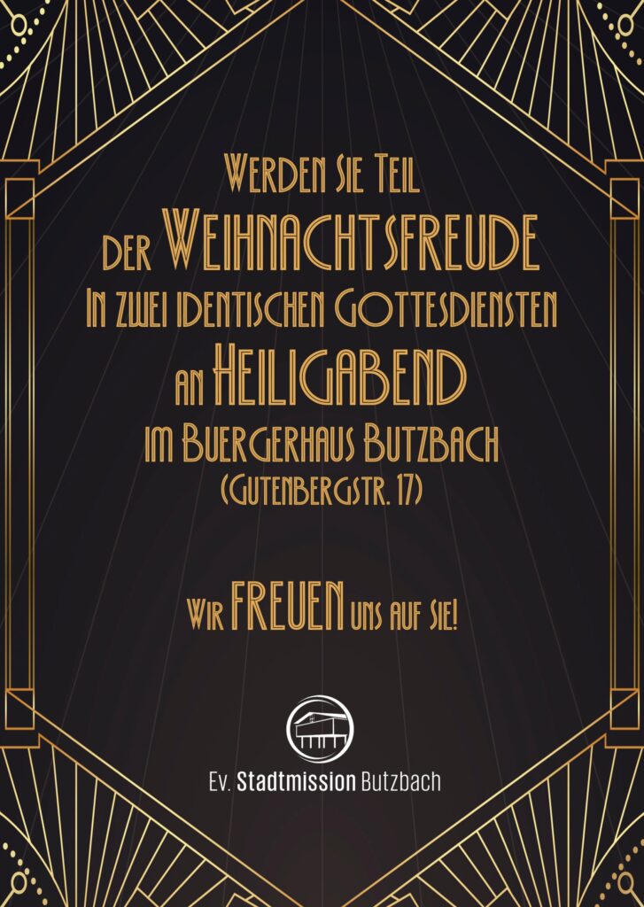 Werden Sie Teil dieser Weihnachtsfreude in unseren Gottesdiensten an Heiligabend im Bürgerhaus Butzbach (Gutenbergstr. 17).