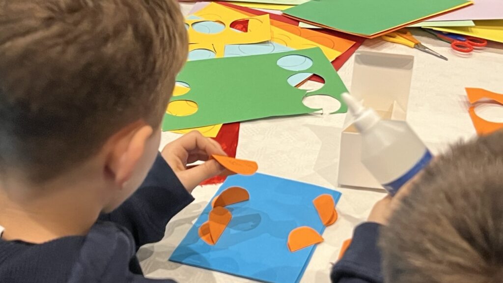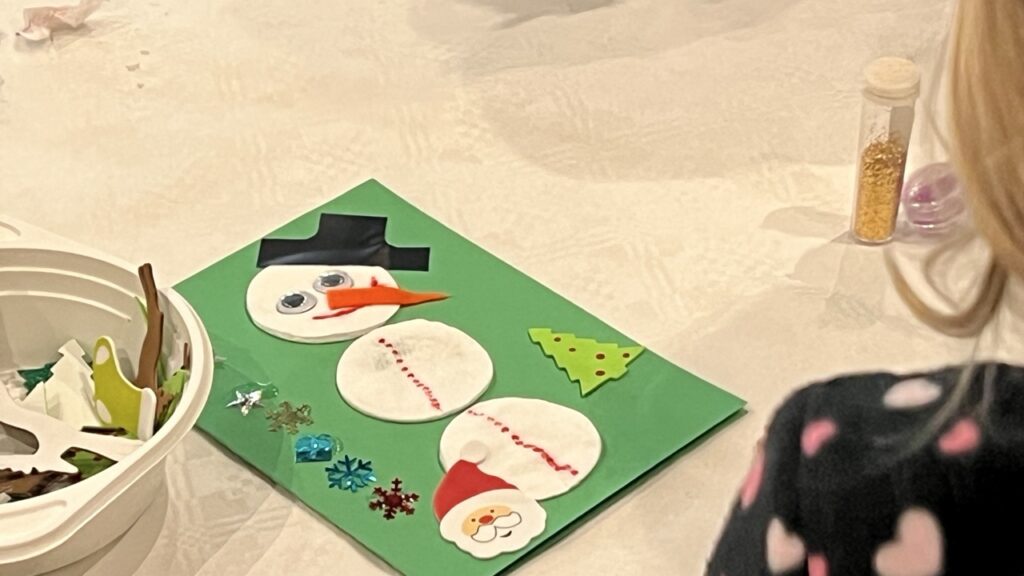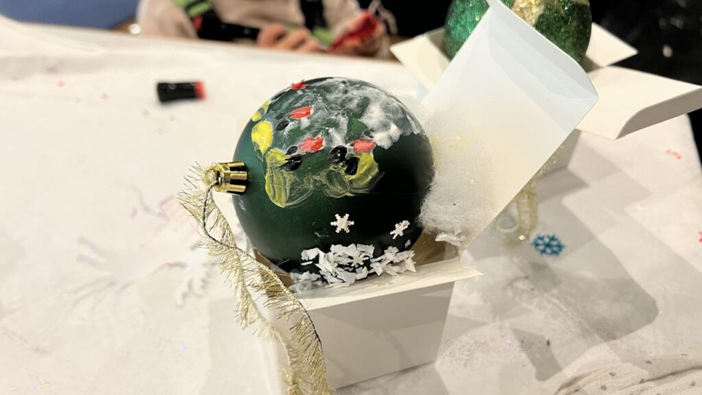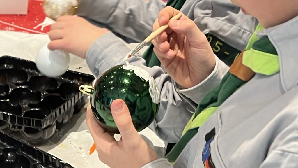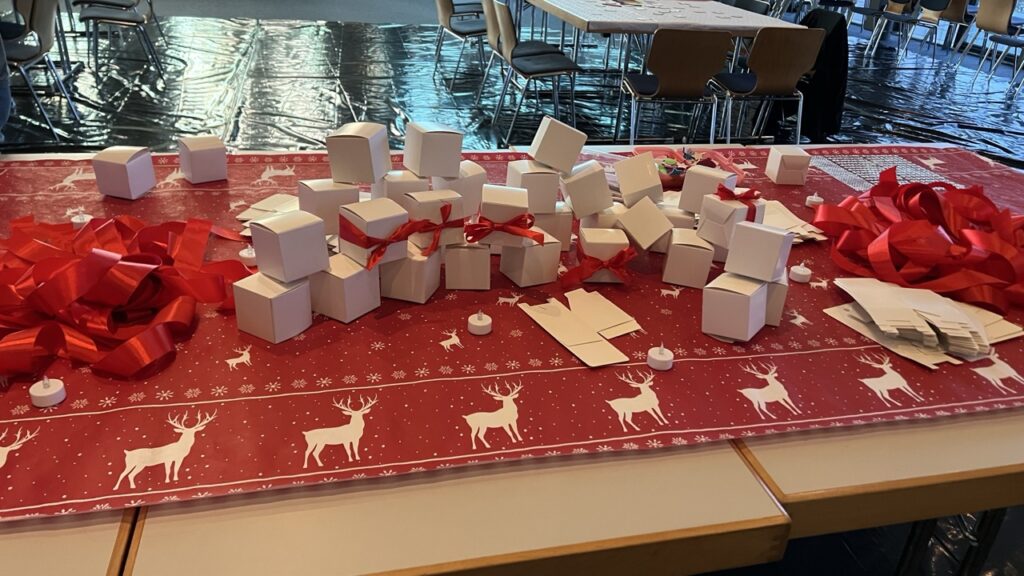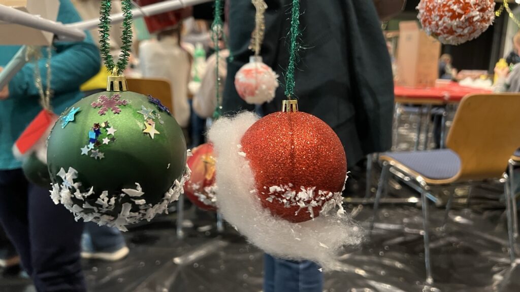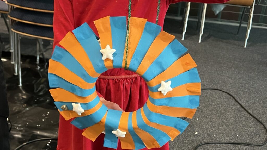 Nach dem gemeinsamen Start verteilten sich Kinder und Eltern im gesamten Gemeindezentrum, genossen Crepes, Brezeln und Punsch und kamen zum Basteln und Gestalten von Weihnachtsgeschenken in den großen Saal. Weihnachtskarten, Türkränze, Weihnachtskugeln, Baumschmuck und tolle Geschenkedosen – es war für jeden etwas dabei. An den Tischen war jede Menge Bastelmaterial für Große und Kleine vorbereitet und so entstanden in zwei Stunden wunderschöne Geschenke. Mit viel Ausdauer und Kreativität bastelten Eltern mit ihren Kids, hatten jede Menge Spaß. Die Helfer an den Tischen gaben Tipps und zeigten, wie aus Fingerabdrücken Schneemänner entstehen oder wie man aus Partytellern Türkränze bastelt.