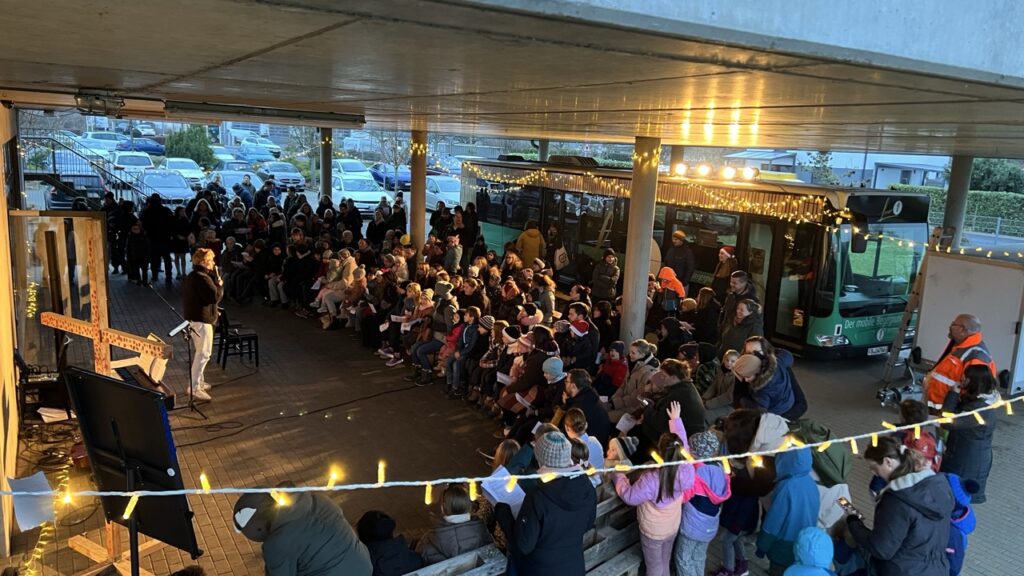Jede Menge Kinder kamen mit ihren Eltern und Freunden am 5. Dezember zu unserer Weihnachtswerkstatt und warteten ab 16 Uhr gespannt draußen vor dem Bistro auf dem mit vielen Lichterketten geschmückten Platz. „Weihnachten ist Party für Jesus“ – so schallte schon bald das fröhliche Weihnachtslied aus allen Kehlen und anschließend lauschten die Besucher gespannt der Geschichte, die Bene den Kindern mitgebracht hatte.